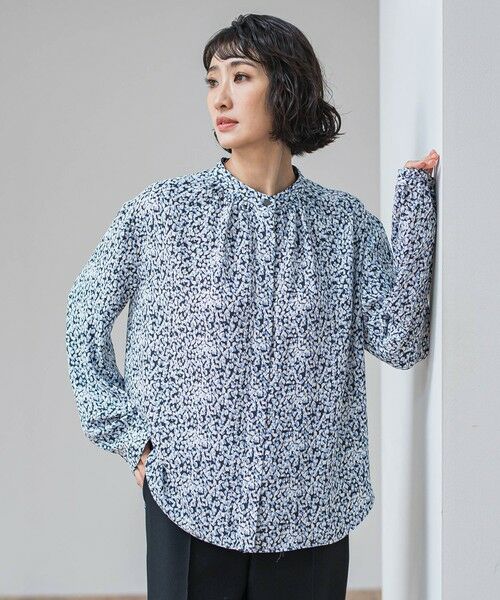 さりげないドットをくずしたような柄が、大人の遊び心を添えるブラウス。ふんわりとしたギャザーシルエットで、体のラインを拾わずリラクシーな着心地です。落ち感のある素材が動くたびに上品に揺れ、オン・オフ問わず活躍します。