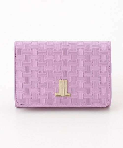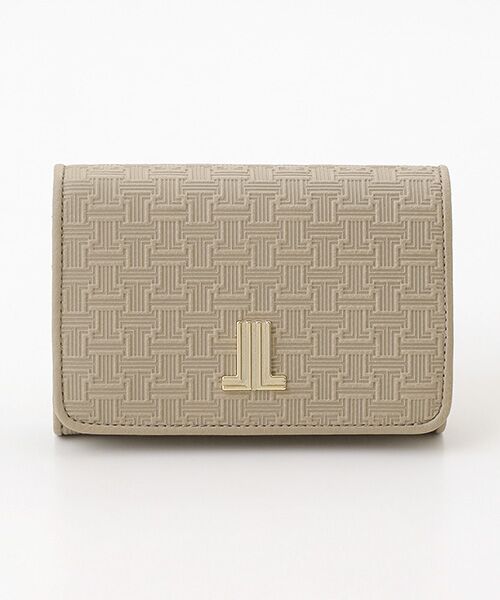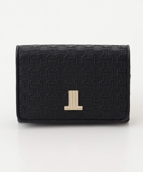 LANVIN COLLECTIONのシグネチャーアイコンであるモノグラムパターンを牛革に型押ししたシリーズ。ワンポイントのブローチと、革引手につけたロゴ入りカシメのゴールドカラーが女性らしくモダンな印象のお財布です。少し大きめの引手が付いたL字ファスナーの小銭入れは開口も大きく出し入れがしやすい。カードポケットも充実していてとても機能的な2つ折り財布です。