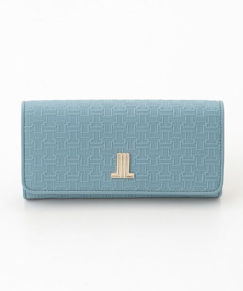 LANVIN COLLECTIONのシグネチャーアイコンであるモノグラムパターンを牛革に型押ししたシリーズ。ワンポイントのブローチと、革引手につけたロゴ入りカシメのゴールドカラーが女性らしくモダンな印象のお財布です。仕切り付きのファスナー式小銭入れスペースとカードポケットスペースの2室構造のかぶせ式長財布です。