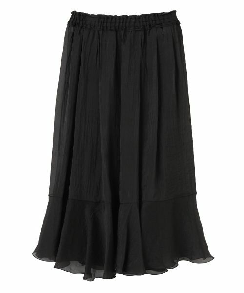 上品な光沢感と繊細なシワ加工が特徴のミディ丈スカートです。ウエストはゴム仕様でフィット感があり、快適な履き心地を実現。縦のラインが美しく、すっきりとしたシルエットを演出します。裾にはフリルデザインが施されており、軽やかな動きが生まれるのが魅力。エレガントながらも程よい抜け感があり、カジュアルからフォーマルまで幅広く活躍する一枚です。シンプルなトップスと合わせて洗練されたコーディネートが楽しめます。※定価(税込)は、2025年6月27日のセール開始前の店舗における販売価格です。