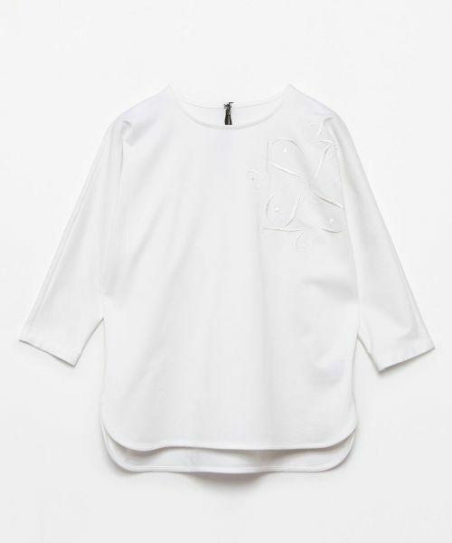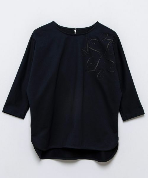 このトップスは、シンプルながらも、胸元に施された立体的な刺繍デザインがアクセントになっています。七分袖とゆったりとしたシルエットが特徴で、リラックスした着心地を提供します。後ろの裾が長めのデザインになっており、体型をさりげなくカバーしつつエレガントな印象を演出。軽やかな素材感で、オンオフ問わず幅広いシーンで活躍するアイテムです。シンプルながらも上品なデザインが、大人の女性にぴったりの一枚です。※定価(税込)は、2025年6月27日のセール開始前の店舗における販売価格です。