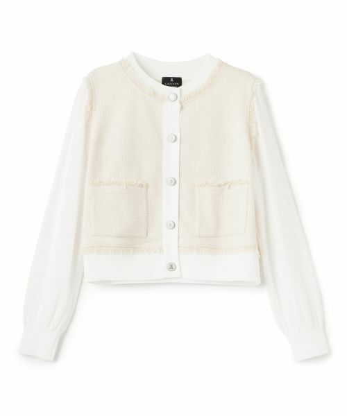 これからの季節にうれしいさらっとした質感のニットに立体的な表情と上質な質感を兼ね備えたシルク混のスラブツィードを組み合わせたニットジャケット。程よいエレガントなムードとカジュアル感がミックスされた幅広いシーンで活躍する一枚になっています。ブランドロゴをあしらったオリジナルのエポキシボタンがクラス感を高めます。同素材のパンツ、スカートと合わせてセットアップ風のスタイリングもおすすめです。※定価(税込)は、2025年6月27日のセール開始前の店舗における販売価格です。