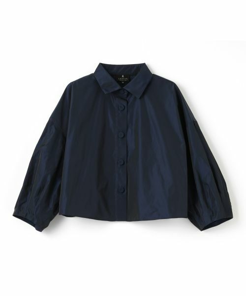 インポートのタフタを使用したクロップド丈のシャツブラウス。ゆとりのあるボックスシルエットにふんわりとしたバルーンスリーブのバランスがトレンドライクな一枚。ボタンには同色のグログランテープを使ったくるみボタンにすることでワントーンに仕上げよりモードな印象に。同素材のパンツとのセットアップスタイルもおすすめです。※定価(税込)は、2025年6月27日のセール開始前の店舗における販売価格です。