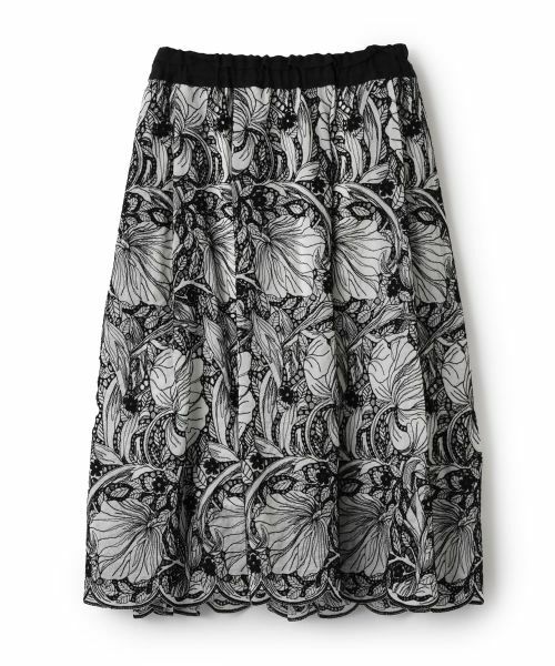 立体感と繊細さのあるアイレット刺繍を施したエンブロイダリーレースで仕立てたラグジュアリーな一枚。裾にはスカラップカットを施すことで軽やかな印象に。ウエストにはグログランテープでアクセントをプラスしているのでインスタイルもきれいにまとまります。スタイリングの主役になるスカートです。※定価(税込)は、2025年6月27日のセール開始前の店舗における販売価格です。