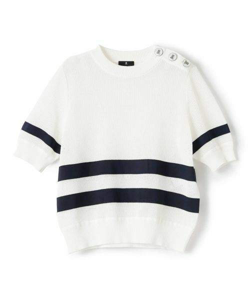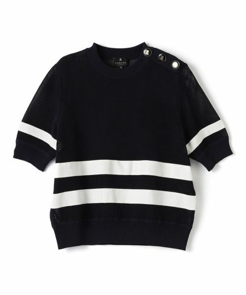 清涼感のあるメッシュニットにグログランテープでボーダー柄のアクセントを施したシーズンムードを高めるニットトップス。素材にもこだわり、美しい光沢感と発色性のあるアセテートに、リサイクル素材で作られたポリエステル素材のECOPETを使用。着心地の良さだけでなくサステナブルなものづくりにも配慮しています。程よいカジュアル感とエレガントなムードを兼ね備えたLANVIN COLLECTIONらしさの詰まった一枚です。※定価(税込)は、2025年6月27日のセール開始前の店舗における販売価格です。