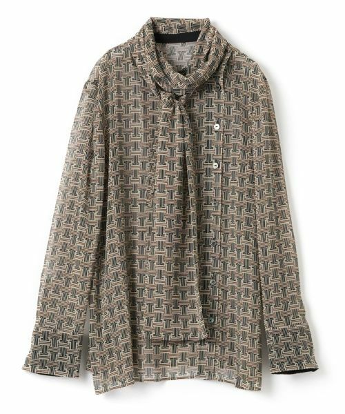 ブランドロゴでデザインしたオリジナルのモノグラムを柔らかなシフォンジョーゼットにプリントして仕立てたブラウス。前立てのボタンをアシンメトリーにすることでモード感をプラス。セットのボウタイは結び方で様々なテイストをお楽しみいただけます。同素材のスカートと合わせてワンピース風に着こなしても。※モデル着用画像はセットのインナーと異なるものを着用しております。※定価(税込)は、2025年6月27日のセール開始前の店舗における販売価格です。