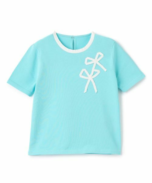 ベーシックな半袖ニットのプルオーバーにLANVIN COLLECTIONのアイコンであるグログランテープでデザインしたリボンモチーフをあしらったブランドらしさの詰まった一枚。