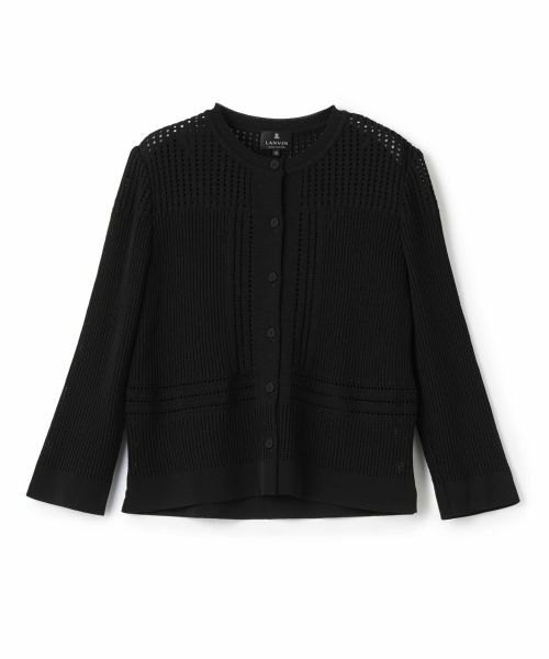 さまざまな大きさのアイレットを組み合わせることで、遊び心のあるパターンになっているカーディガン。程よい透け感はアクセントになるだけでなく、これからの季節にうれしい風通しの良さも叶えます。レーヨンならではのドレープ感とさらっとした質感がエレガントなムードを高めます。羽織としてはもちろんボタンを全て留めたトップスライクな着こなしもサマになるアイテムカーディガンです。