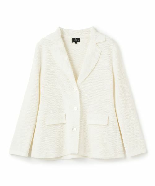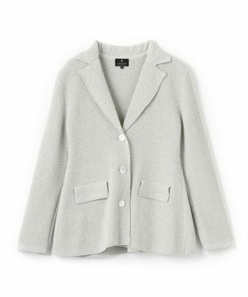 LANVIN COLLECTION定番のカノコ編みのニットジャケット。和紙を使用することで吸湿性・保湿性に優れた快適な肌触りに。テーラードデザインながらも柔らかなフレアシルエットにすることで女性らしい印象に。袖口にはスリットを施しグログランテープをアクセントにプラス。襟ぐりには編みテープをデザインすることで伸びにくくする効果も。さらりと羽織るだけでクラス感を演出してくれる一枚です。※定価(税込)は、2025年6月27日のセール開始前の店舗における販売価格です。