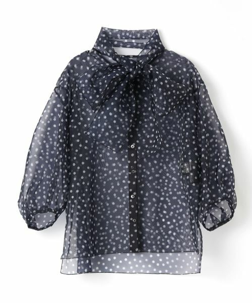 繊細な透け感と上質な素材感が際立つ、プリントオーガンジーボウタイブラウス。