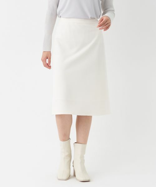 ドライタッチな質感のカルゼ生地で仕立てたスカート。すっきりとしたラインながらもストレッチ性のある素材を使用しているので、着心地の良さもキープ。バックに切り替えを施し柔らかなAラインを演出。同素材のジャケットとのセットアップはもちろん、幅広いシーンにマッチする一枚です。モデルサイズオフホワイト H168 B83 W59 H87 着用サイズ38ブラック H170 B77 W58 H85 着用サイズ38※定価(税込)は、2024年6月28日のセール開始前の店舗における販売価格です。