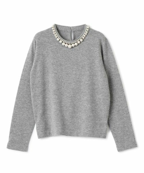ネックレスのように付けられた大きさの異なるパールビーズは職人によるハンドメイドならではの繊細なデザインになっています。
