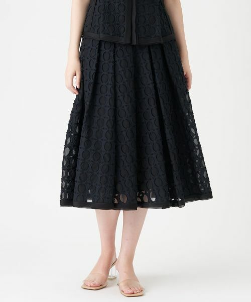 サークル模様が目を引くカットジャカード生地で仕立てたスカート。