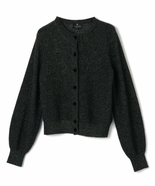 カーディガンのボタンにはベルベット素材を使ったシーズンムードを高めるトップスになっています。
