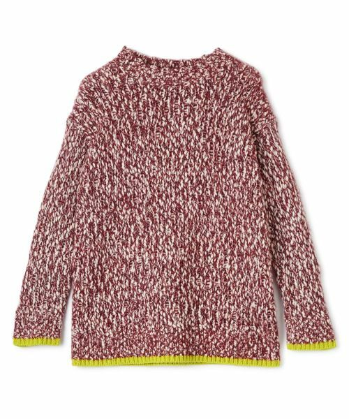 メランジのコントラストで明るい印象のニットトップス。裾と袖元のラインも相まってシンプルながらハイセンスなデザインです。ウールとアルパカで暖かい素材感と、首元も開きすぎないコンパクトなシルエットがレディな雰囲気にも。インナーにシャツ襟をちょこっと覗かせたレイヤードスタイルも楽しんでいただけるアイテムです。