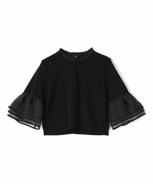 光沢のあるレーヨン糸と、ふんわりとした質感が特徴のナイロン糸を丁寧に撚り合わせることで、上品な風合いと柔らかな立体感を生み出しています。袖にはシルクオーガンジーとグログランをあしらい、異素材のコントラストが軽やかでエレガントな印象をプラス。動くたびに揺れる袖が抜け感を演出し、華やかさを添えます。さらりとした肌離れの良い快適な着心地で、オンオフ問わず幅広いシーンで活躍する一着です。