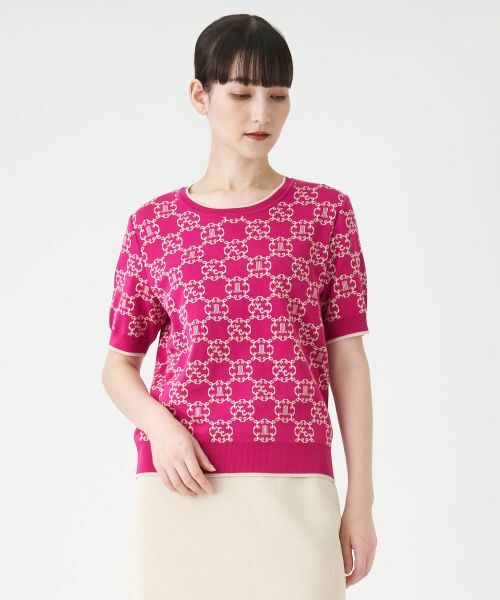 ブランドロゴとLとCを組み合わせたモチーフでエンブレムのようなパターンをデザインしたオリジナリティ溢れるジャカードニット。ジャカードならではのフラットでビビットな柄の美しさでLANVIN COLLECTIONらしいモード感と遊び心のある一枚に。スタイリングの主役にしたいアイテムです。モデルサイズピンク:H170 B77 W58 H85 着用サイズ38※定価(税込)は、2024年6月28日のセール開始前の店舗における販売価格です。