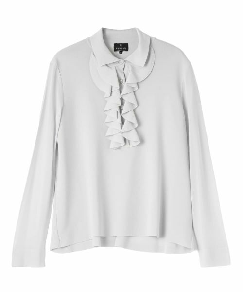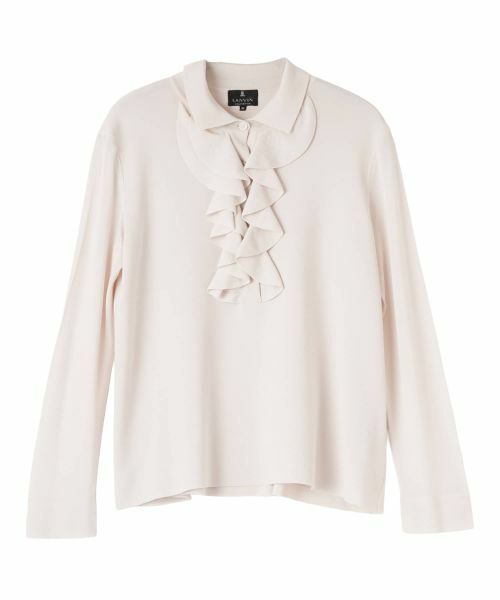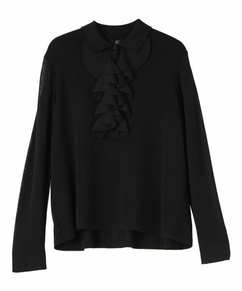ブラウスのように華やかなフロントラッフルデザインが印象的な長袖ニットトップス。柔らかなAラインシルエットが優美な動きを生み出し、軽やかでエレガントな着こなしを叶えます。ナイロンとレーヨンの素材が繊細な表面感と控えめな光沢感を演出し、肌離れの良い質感で快適な着用感を備えた一枚です。ベージュ着用モデル:H170 B77 W58 H85 着用サイズ38ブラック着用モデル:H165 B77 W57 H79 着用サイズ38