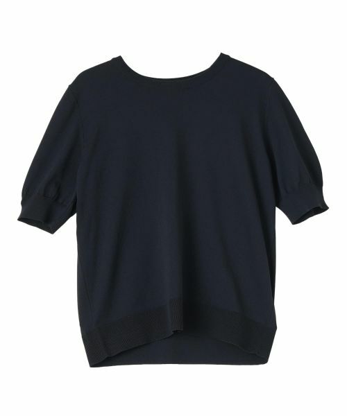 バックの首元にジャカード織であしらったブランドロゴがさりげないアクセントを添える半袖ニットトップス。襟ぐりにはストレッチ性のある糸を使用し、型崩れしにくい仕様に仕上げました。艶を抑えたアセテートの落ち着いた表情と、ナイロンのキックバック性が絶妙に融合。エアリーな膨らみと軽量感、ドレープ性を兼ね備えた上質な一枚です。ネイビー着用モデル:H170 B77 W58 H85 着用サイズ38ブラウン着用モデル:H165 B77 W57 H79 着用サイズ38