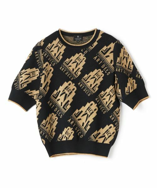 袖口、裾、そして襟元にあしらわれたラメ糸のラインが、シンプルながらも洗練されたアクセントを添えます。