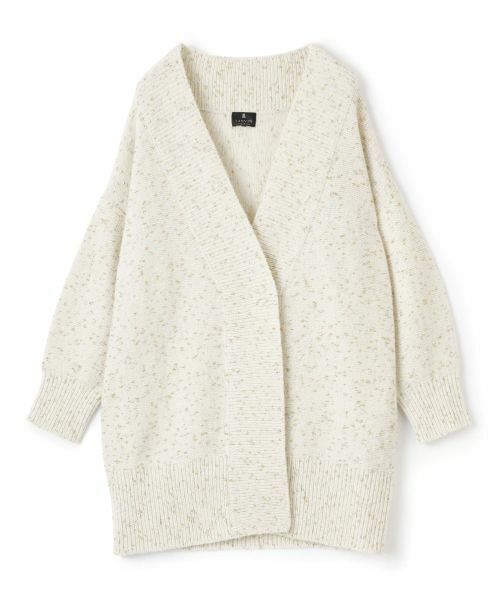 ゴールドとシルバーの糸を混ぜることでさりげないきらめきをプラスしたカーディガン。フロントには一つだけスナップボタンを付けることで抜け感のあるシルエットに。ボタンにはグログランテープを施しLANVIN COLLECTIONらしい遊び心がちらりと見える仕様に。しっかりと長さのあるミドル丈で軽アウターとしてもコートインの防寒アイテムとしても活躍する一枚になっています。モデルサイズH165 B77 W57 H79 着用サイズ38