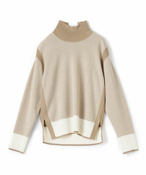 異なる編み地を巧みに組み合わせた表情豊かなデザインは、着る人の所作まで美しく引き立てます。脇と後中心のスリット開きが、軽やかな動きと洗練された抜け感を演出。同素材のリブ編みで仕上げたハイネック、袖口、裾が、美しいシルエットと心地よいフィット感を両立させます。