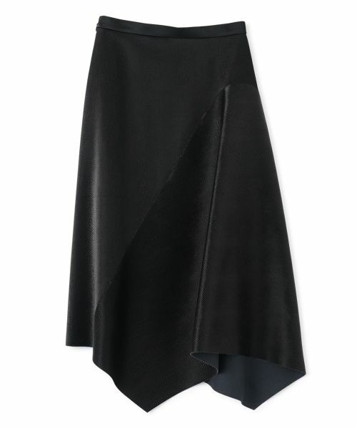 イタリアINTESA社のマットでソフトな質感でありながら、光の当たり方で変化する落ち着いた光沢がエレガントな素材ZAFFIRO F0331を使用したスカートです。イタリアのINTESA社製ファブリックならではの、洗練された質感が魅力。アシンメトリーなカッティングが、その光沢の変化をさらにドラマティックに演出しデザイン性の高い美しいシルエットを生み出しています。圧倒的な存在感を放つ主役級のスカートです。