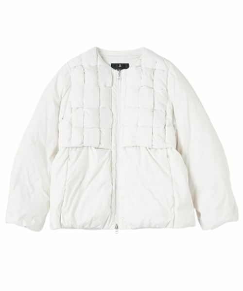 高品質なダウンを贅沢に使用した、軽やかで暖かなアウターです。LANVIN COLLECTIONならではのクラフト感と上質さをまとい、秋冬の装いに洗練された温もりを添えます。前身頃にはグログランテープで編み込んだ格子柄を施し、メゾンのディテールを表現。袖はふんわりとしたバルーンスリーブの内側にリブを設けることで、フィット感と保温性を両立しました。レイヤードスタイルにも取り入れやすく、遊び心と上品さを兼ね備えた一着です。