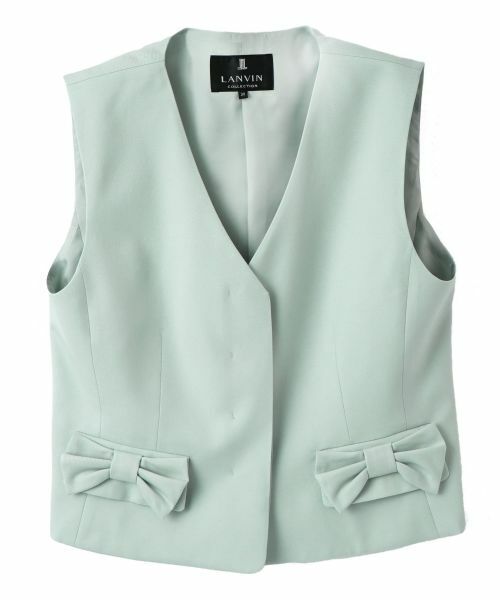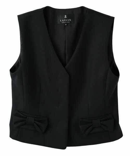 深めのVネックがシャープな印象を与えつつ、フロントポケット部分に施されたリボンデザインがさりげないアクセントになっています。ブラックカラーで汎用性が高く、シャツやブラウスと合わせてクラシックなスタイルを演出可能。上質な素材感と洗練されたカッティングで、フォーマルにもカジュアルにも対応できる上品なアイテムです。