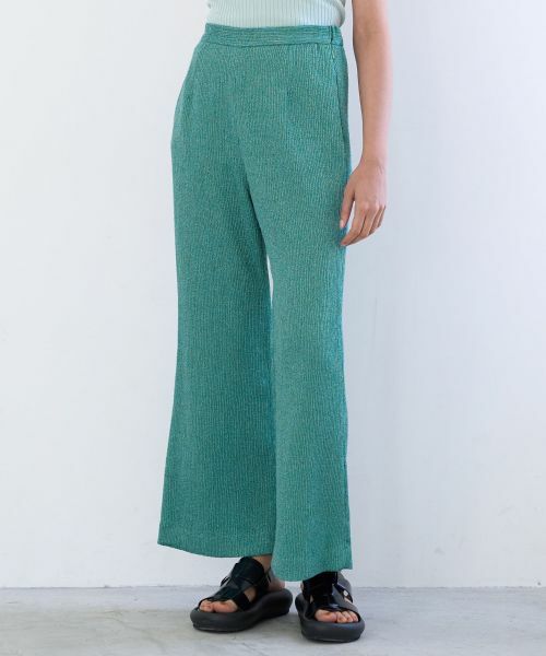 日本の織物技術を生かした生地を使用、ループジャガードフレアパンツ