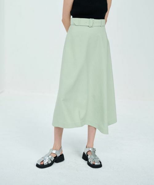 アシンメトリーなフレアシルエットがほんのりモードな印象を与えてくれるスカート。