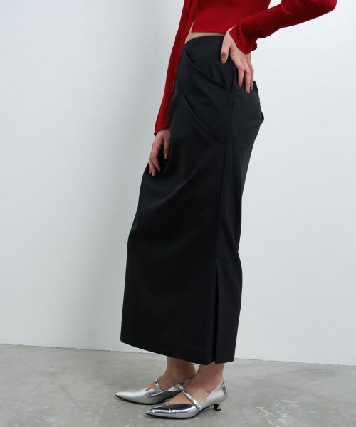サイドから流れるタックがレディライク。ウールトロピカルドレープタイトスカート