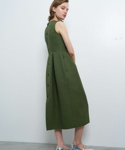 クラシカルな印象のワンピースはバックシャンがポイント。メランジツイードタックワンピース