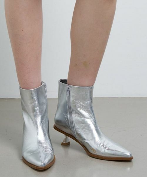 リアルレザーのショートブーツ。すっきりとした細身のフォルムで足元にキレイめなアクセントを加える一足です。