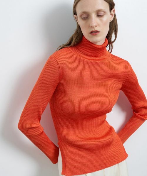 VANVIN en Blen定番アイテムとなっている、レーヨン糸を使用した光沢感あるリブタートルニット。