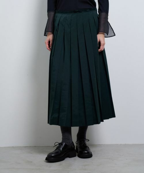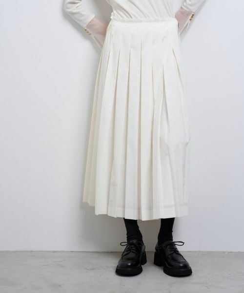 上品な印象で甘くなり過ぎないプリーツスカート。