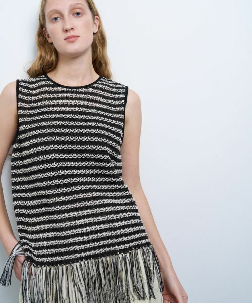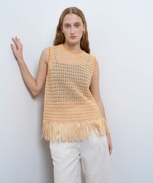 (※フリンジのテープヤーンは着用を重ねるごとに細かくほぐれていきます)