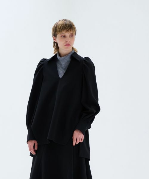 カラーとのギャップが目を引くショルダーは、計算されたタックによるボリューム感。