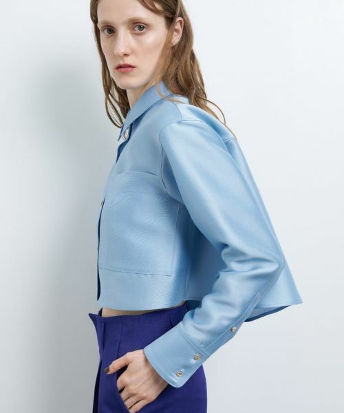 特徴的な素材でモードに仕立てたショート丈のシャツ。