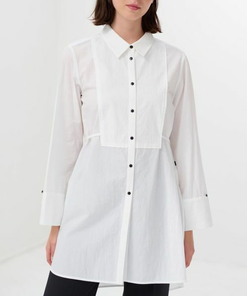 お尻が隠れるロング丈と、ワイドスリーブでリラックスムードを醸し出すブラウス。