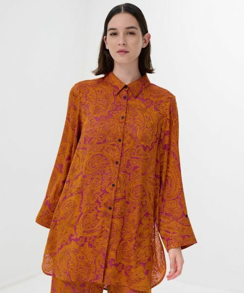 鮮やかさと軽さを生かしラグジュアリー&リラックスムードたっぷりに仕上げたシャツは、トップスとしても、ラフな羽織りとしてもおすすめ。