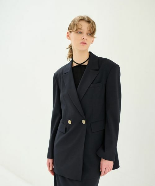 肩パッドの入った大きめなショルダーの、クラシカルなダブルブレスト仕様。