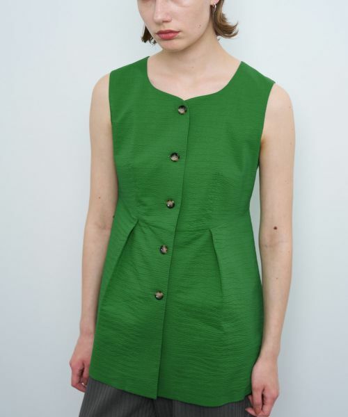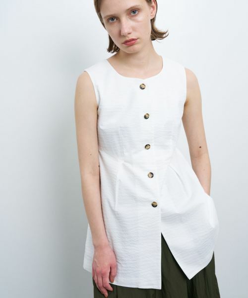 暑い時期に活躍するノースリーブブラウスを、ベスト型でトレンドライクなアイテムに仕上げました。