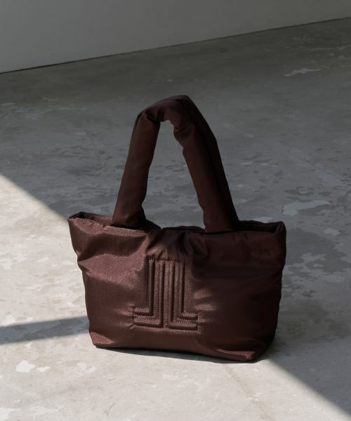 ブランドアイコンのJLロゴを大きく立体的に描いたパデッドミニトートバッグ。