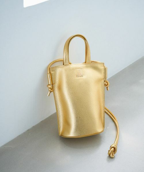 ◇デザインコーディネートにアクセントを加えるアクセサリー感覚のミニバッグシリーズ。フロントにはロゴ金具をのせて重厚感をプラスしました。シャイニーな素材感がキャッチーなスマホが入るミニショルダー。縦長のシルエットが新鮮です。背面にはカードポケット付き。