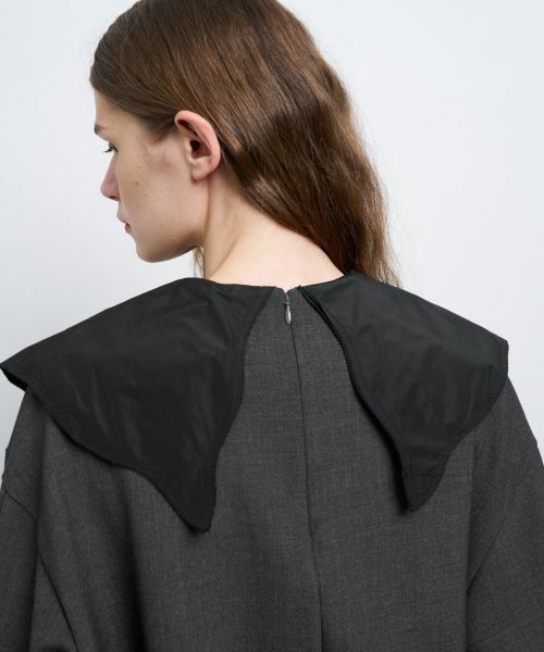 異素材タフタの襟は、ゆるやかなカーブラインに繊細なピコカット始末で印象的に仕上げました。