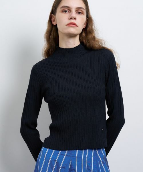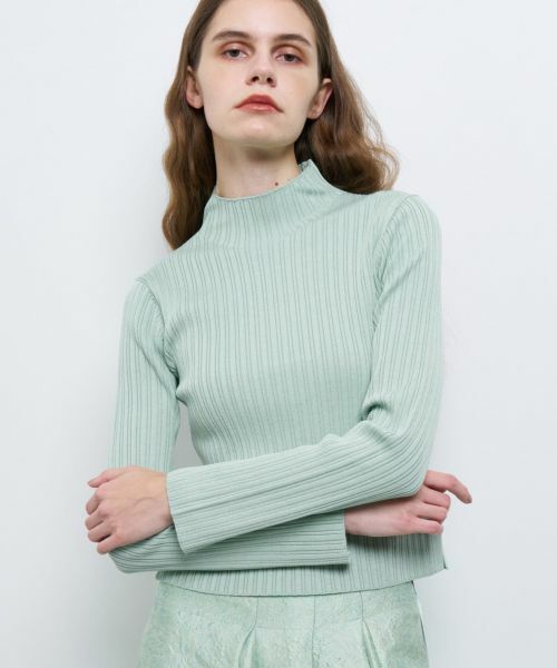 ランダムなリブ編地で適度なフィット感がありながら、目の詰まったしっかりした編地にしているため身体のシルエットも拾いにくい仕上がりに。