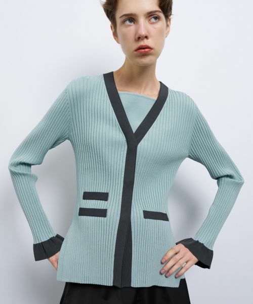 配色が特徴的なVネックカーディガン。