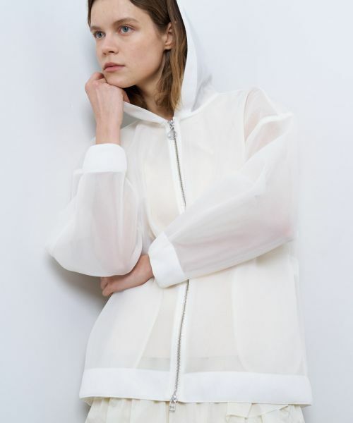ハリと軽さが特徴のシアーダンボール生地を使用したフーディー。