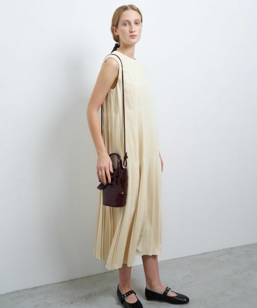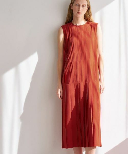 プリーツが2本ずつ重なっていることで立体感と縦ラインが生まれ、甘くなりすぎない印象に。
